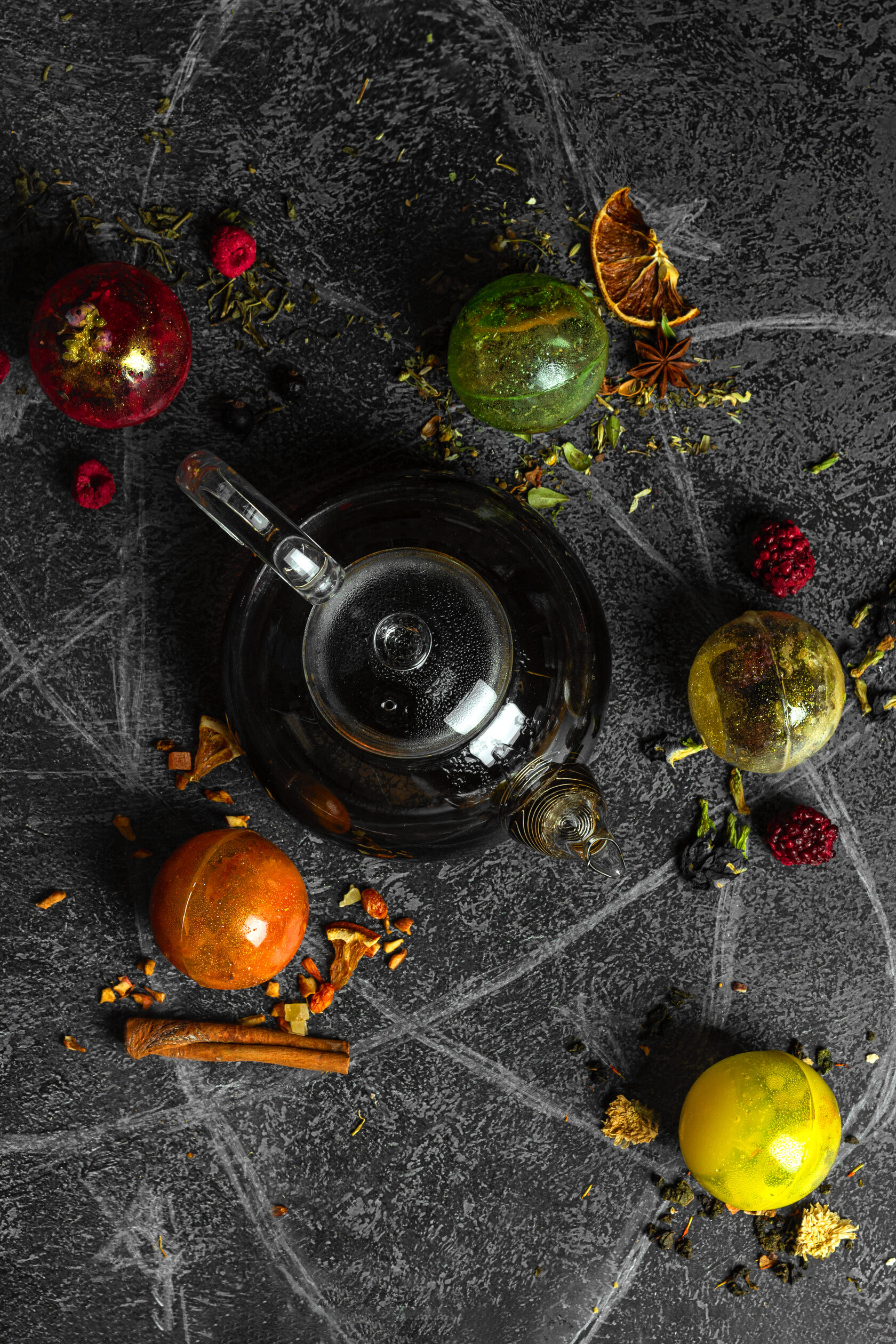 Подарочный бокс со стильным и современным дизайном включает в себя: авторский чайник на 600 мл, 4 не обжигающих пиалы из жаропрочного стекла (по 100 мл каждая), подставка для подогрева чайника+cвеча, 6 чайных сфер, каждая из которых таит особенный букет чая с ароматными натуральными добавками